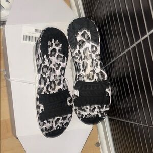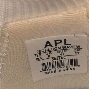 Stylish white knit sneakers with a unique black and gray patterned sole. Perfect for casual wear. Techloom wave as 10.5 never worn