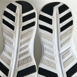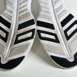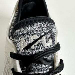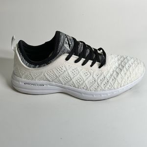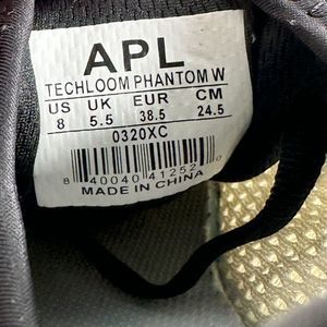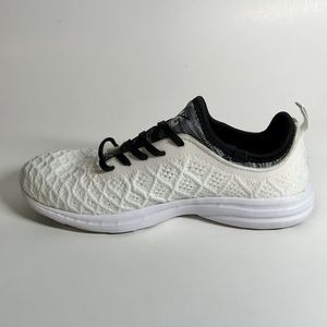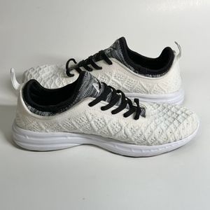 Stylish APL athletic shoes. White textured upper. Black laces and accents. Comfortable and sleek design.