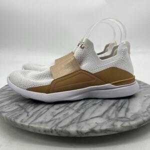 APL WOMENS 6.5 TRAINING SHOES WHITE TAN TECHLOOM BLISS SLIP ON ELASTIC STRAP