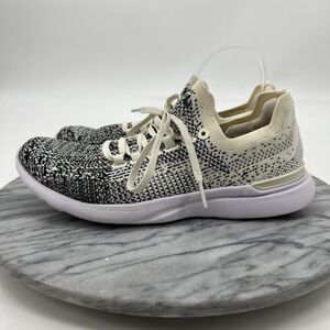 APL Womens 8 Running Shoes Ivory Black Techloom Wave Performance Sneakers 0422XC