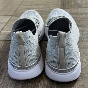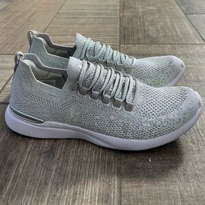 APL Women's TechLoom Breeze size 8.5. Gently used and in great condition. Metallic Silver / Metallic Pearl. The ultimate intersection of luxury and performance, the sleek and streamlined APL TechLoom Breeze boasts a stunning silhouette. Over two years in the making and our lightest running shoe ever at 6.8 oz., the Techloom Breeze running shoe features a seamless, high elastic stretch rebound Techloom upper that moves with your feet and an internal speed lacing system and exposed eyelets which hold your foot securely in place to allow a full range of motion.