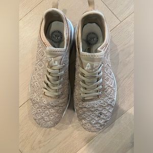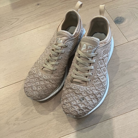 Used pair of apl techloom phantom in rose gold. Beautiful color. Some minor staining but could probably remove with some stain remover/washing