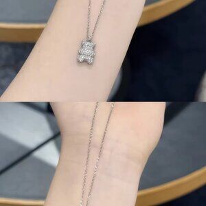 This necklace is handcrafted from sterling silver. The Yummy bear is paved with black spinel on one face and white cubic zirconia on the other.