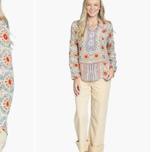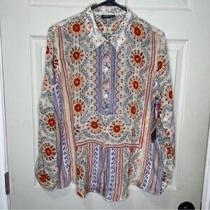 AP.NY Floral Print Roll Tab Sleeve Button-Up Shirt Sz L