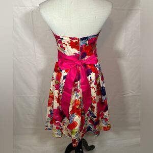 A.P.N.Y. Pink white floral strapless midi dress with cinch tie pleated