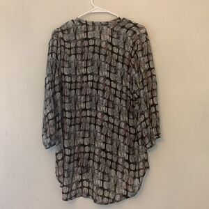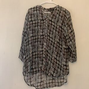 APNY tunic Size XXL Gray patterned Sheer Length 31” Bust 22” Button front 100% viscose Hand wash
