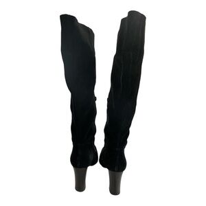 Step into timeless elegance with these stunning black suede knee-high boots.