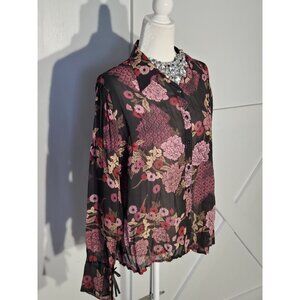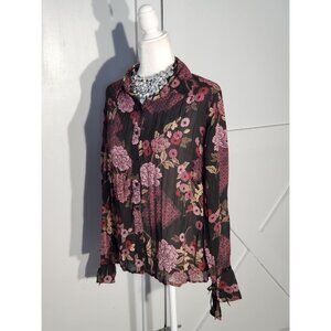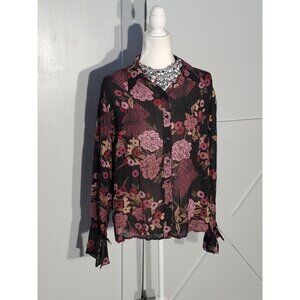 APOSTROPHE FLORAL FORMAL BLOUSE COLOR BLACK LONG SLEEVE POLYESTER SIZE M