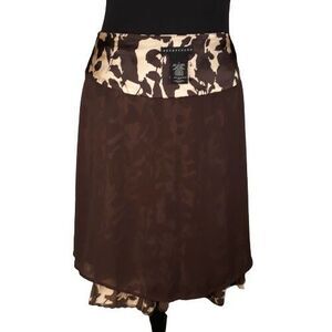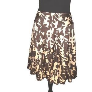 APOSTROPHE Skirt Size 8 Brown Tan Cream Graphic Pattern Lined Lace Hem