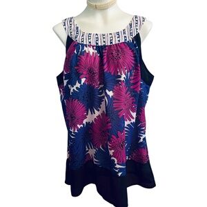 APOSTROPHE Woman Floral Print Sleeveless Blouse 16W 18W Purple Blue Black