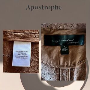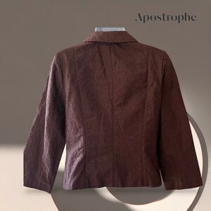 APOSTROPHE Women's Eyelet Button Front Blazer Jacket, Casual, Brown Sz. 2