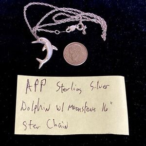 APP Beautiful Sterling 925 Silver 16” Dolphin necklace. We work hard to find high quality fine jewelry for our buyers. This item is sourced from an estate sale and the former owner had exquisite tastes. The great craftsmanship make this item a true work of art and with its pristine condition It is truly A great value of fine jewelry at costume pricing! Let’s make it yours!