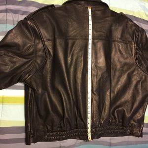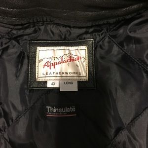 This is a police style goatskin jacket branded as Appalachain and made by Taylor Leather. It has a Thinsulate lining. I took pictures with a measuring tape to give you an idea of the size. It is labeled as a 4XL. It is brand new and never worn.