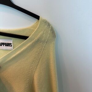 A soft, cozy light yellow sweater from APPARIS, designed with the brand’s signature modern, clean aesthetic. This style features a relaxed yet flattering fit with a subtle luxe feel. The perfect pop of color, it pairs beautifully with denim, trousers, or layered under a coat for an elevated everyday look.
