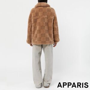 APPARIS **NWT** Lucy Textured Checkerboard Oversized Teddy Jacket Butterscotch