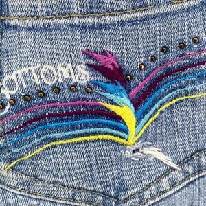 APPLE BOTTOMS Jeans 8 Distressed Straight Low Rise Stretch Denim Blue VTG HK