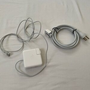 Lightly used. Apple MagSafe 2 power adapter charging block (60W) with 70” attached cable and 72” extension power cord attachment. For older MacBooks with magnetic five point port (please review photos).