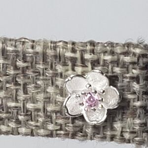 Beautiful tiny flower blossoms with pink crystal centers and enameled petals of white & silver.