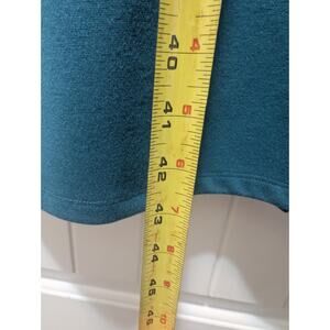 The APPLESEED'S Teal 3/4 Sleeve Comfy Knit Dress in size M is a versatile and stylish piece suitable for casual or work occasions. With a solid teal color, round neckline, and flounced sleeves, this dress features a pullover closure and is made from a blend of polyester, viscose, and spandex for added stretch. The below knee length and flared sheath silhouette with princess seams add a touch of elegance to this classic and comfortable dress, perfect for all seasons. Easy to care for with machine washable instructions, this dress is a must-have for any woman's wardrobe.