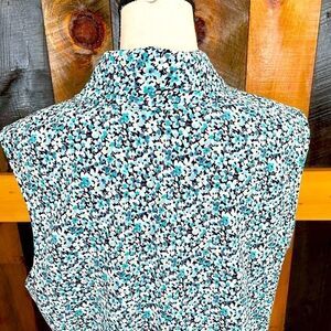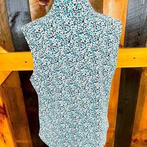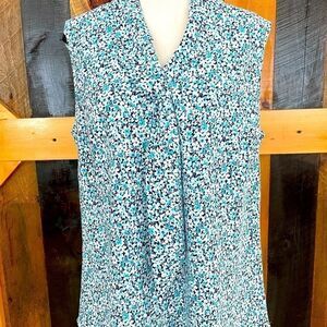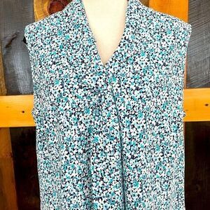 Appleseed’s Petites floral sleeveless top with tie neckline. Soft collar with half tie . Size PL, 100% polyester. Approximate measurements are pit to pit flat 21”, length from shoulder approximately 26”. Would look great with white shorts or jeans!!