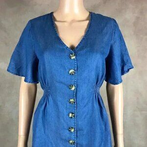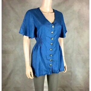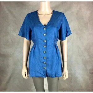 appraisal Women's Soft Chambray Flutter Sleeve Fitted Denim Tunic