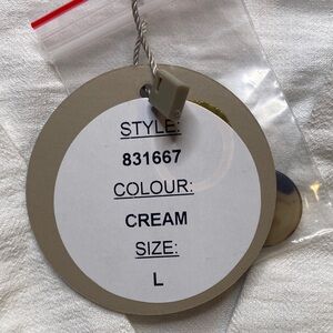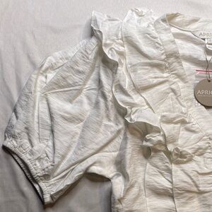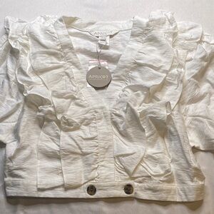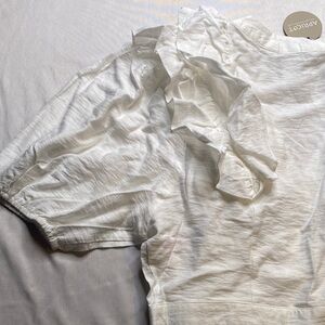 Elegant ivory top with ruffle accents. Stylish and versatile.