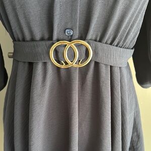 Chic gray mini dress by APRICOT. Features a stylish gold belt detail. Perfect for any occasion.