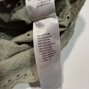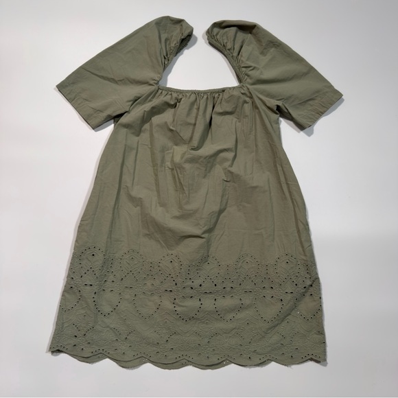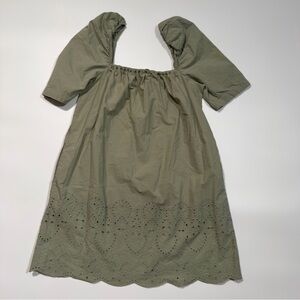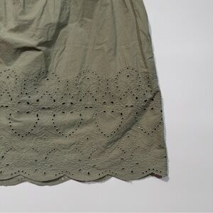 Stylish olive dress with eyelet hem. Perfect for casual outings.