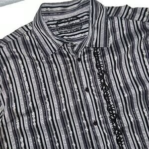 APRICOTTREE Cross On Back Button Up Shirt Mens SXL Striped Gray & Black