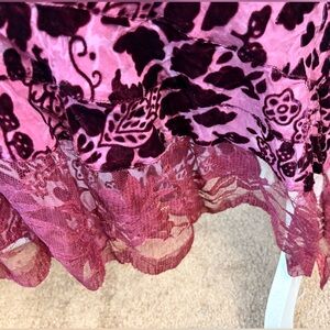 April Cornell Burgundy Silk Velvet Burnout Ruffled Maxi Dress XL. In great condition