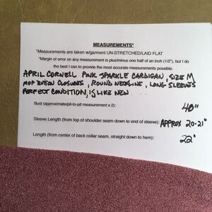 APRIL CORNELL metallic sparkle cardigan, DUSTY PINK, Women’s Size Medium. Check measurements for accurate fit.
