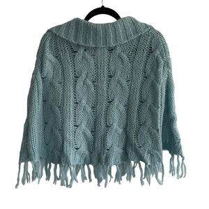 APRIL CORNELL Wool Cable Knit Button Front Poncho Cardigan Sweater Jacket Blue