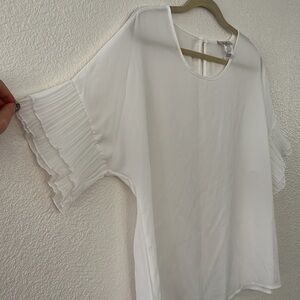 APRIL • White Sheer Ruffle Short Sleeve Top Blouse