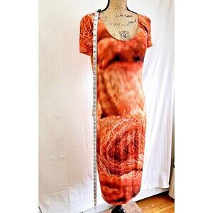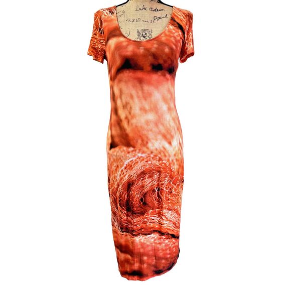 APRIORI/Escada group Orange Volcano Lava Print Short Sleeves Midi Dress Sz 8