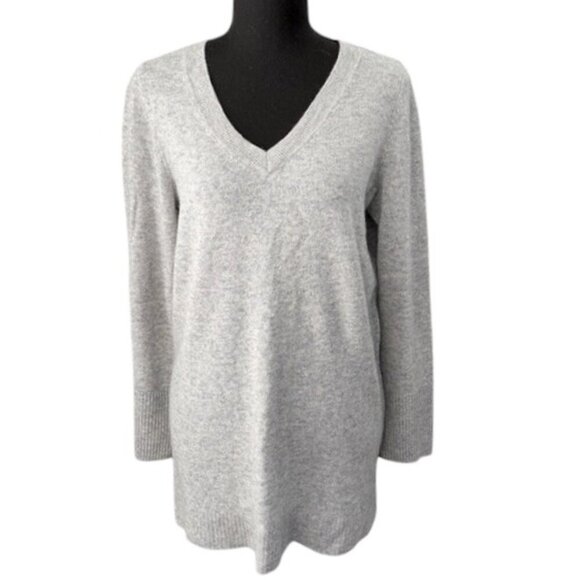 APT 9 100% Cashmere Light Heather Gray V-Neck Tunic Sweater Medium
