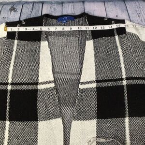 APT 9 Black Cream Buffalo Plaid Open Front Casual Cozy Comfy Cardigan Sweater L