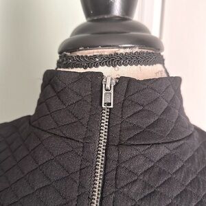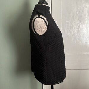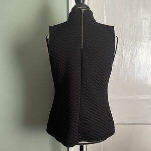 Black Diamond quilted sleeveless mock neck top looks great on its own for your work or casual wear, but also makes a great layering piece. This will surely be your new favorite wardrobe essential! Back zip.