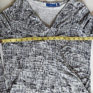 APT. 9 - Black & White Soft Knit Lightweight Tunic Wrap Top. Long sleeve, V-Neck pullover. Elastic bottom front.