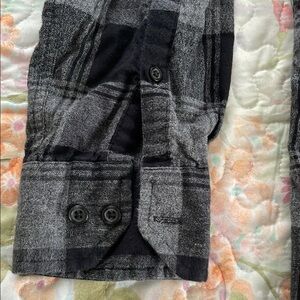 This shirt features a classic button-down design in a versatile black and gray color scheme, perfect for casual outings. Made from a comfortable material, it offers a relaxed fit ideal for everyday wear.