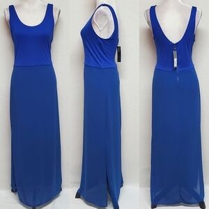 APT. 9 Blue Allure Solid Mixed Media Chiffon Skirt Sleeveless Maxi Dress Medium
