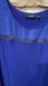 Navy and Nickel color barrel beads along bust-line dividing the shear fabric on top from the Rayon/Spandex knit on the bottom half.
