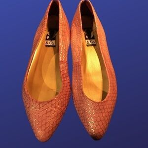 APT. 9 & Co. "Bullseye-6” Pointy Toe Flats,100% Leather, PINK REPTILE, 10M. New Without Box, EXCELLENT condition.