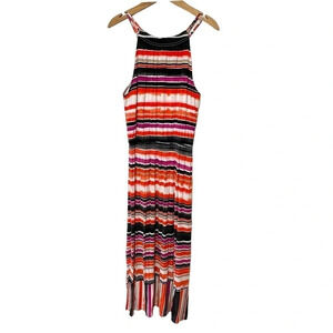APT. 9 L colorful striped maxi dress double side slits & elastic waist