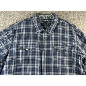 APT 9 Men's Sz 3XLT Tall Button Shirt Short Sleeve Plaid Blue 100% Cotton