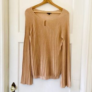 APT. 9 Metallic Champagne Gold Ribbed Lace Sweater L Bell Sleeve Holiday Party