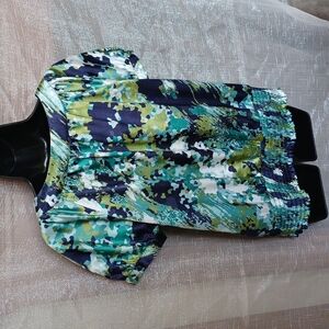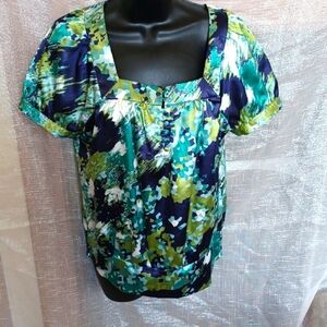 APT 9 Multi Color Blue Green Aqua Cream Baby Doll Top Cap Sleeve, S