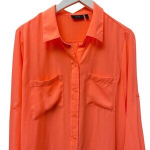 APT 9 Neon Orange Blouse Large Long Sleeve Button Up Womens Bright Top