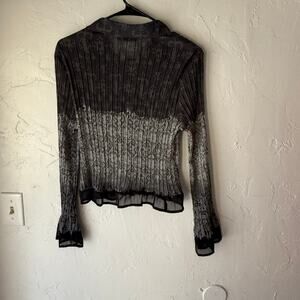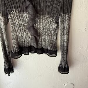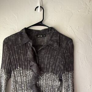 APT. 9 Petite PL Sheer Ruffle Blouse Pleated Gray Black Y2K Grunge Whimsigoth