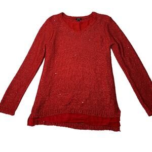 APT 9 Red Sequins Knit Long Sleeve Sweater XL