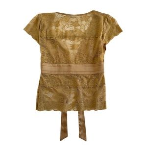 Sheer Lace V-Neck Top w/ Buttons & Lace Ribbon Tie